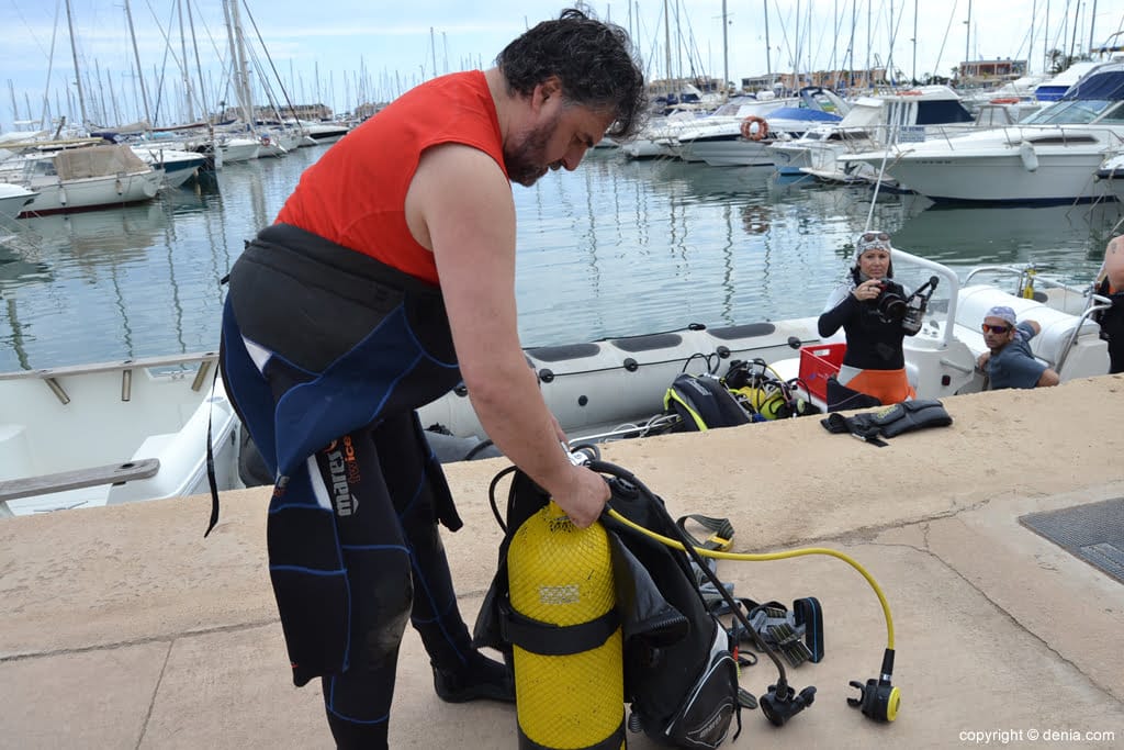El pintor Alfonso Cruz, que estos días expone su obra en Dénia, antes de partir hasta la Cova Tallada para su inmersión.