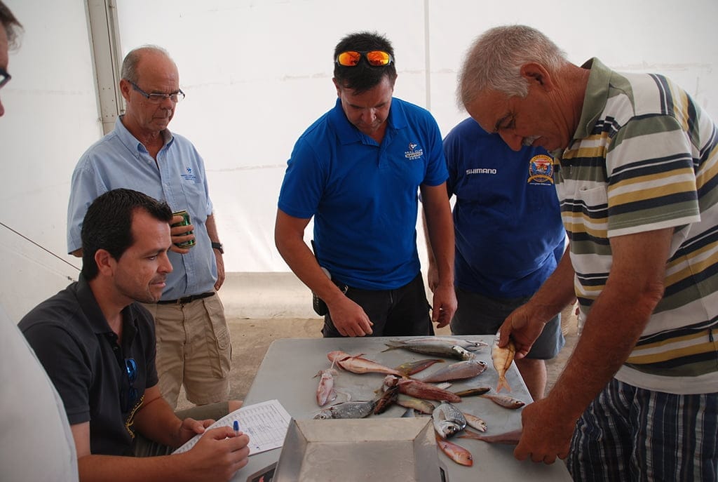 Momento del pesaje de las capturas del concurso de pesca de especies del RCN. Dénia.