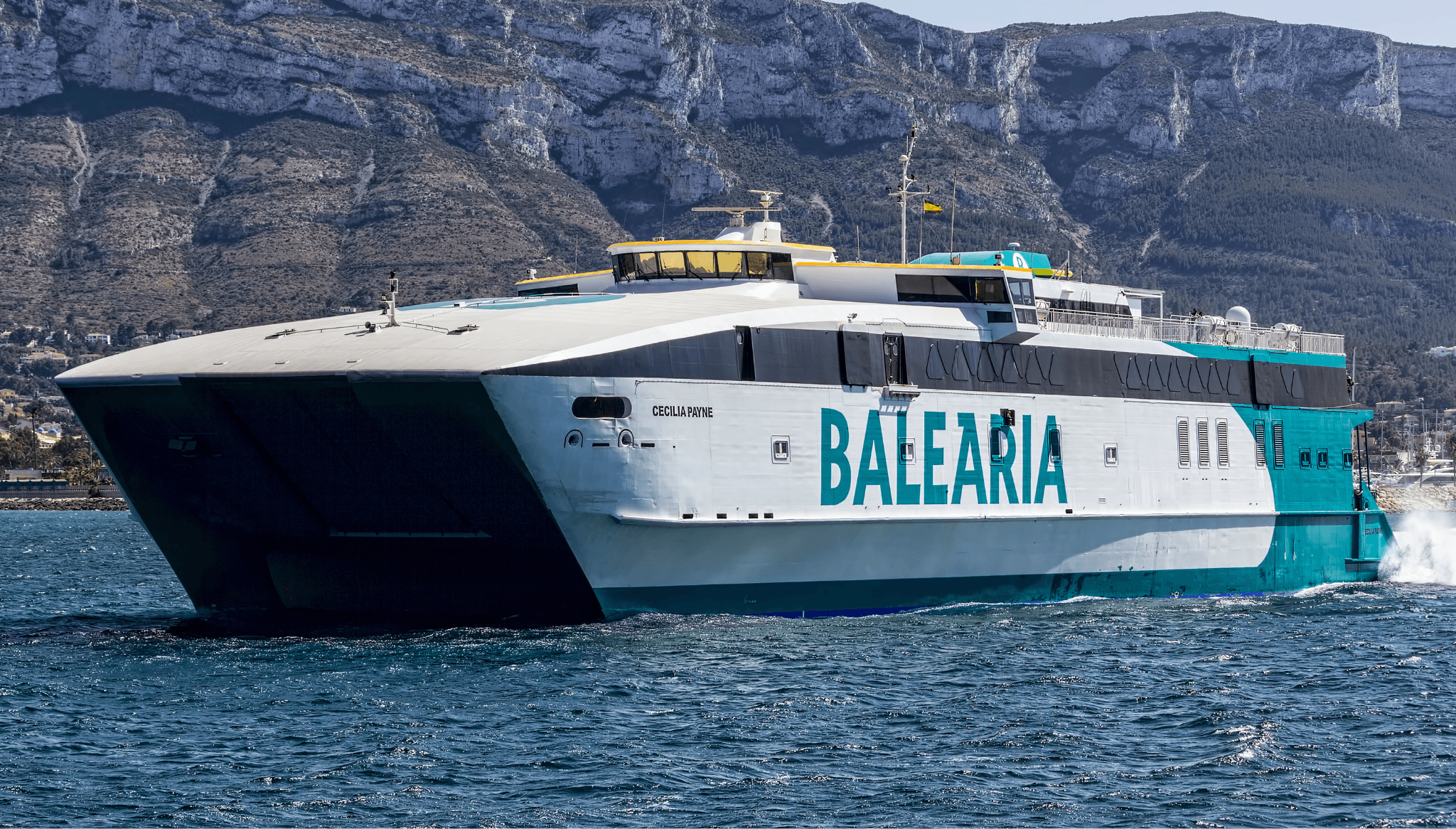 11 de julio de 2024 - 12:14Buque de Baleària Foto Anterior6 de 11Foto SiguienteVer el artículo original: Baleària incorpora el segundo ‘fast ferry’ del mundo con motores duales a gas a la ruta Barcelona-Mallorca-Menorca Abel Matutes Abel Matutes Adolfo Utor (2) Adolfo Utor Bahama Mama Cecilia Payne Eleanor Roosevelt Margarita Salas (2) Margarita Salas Ramón Llull Rusadir