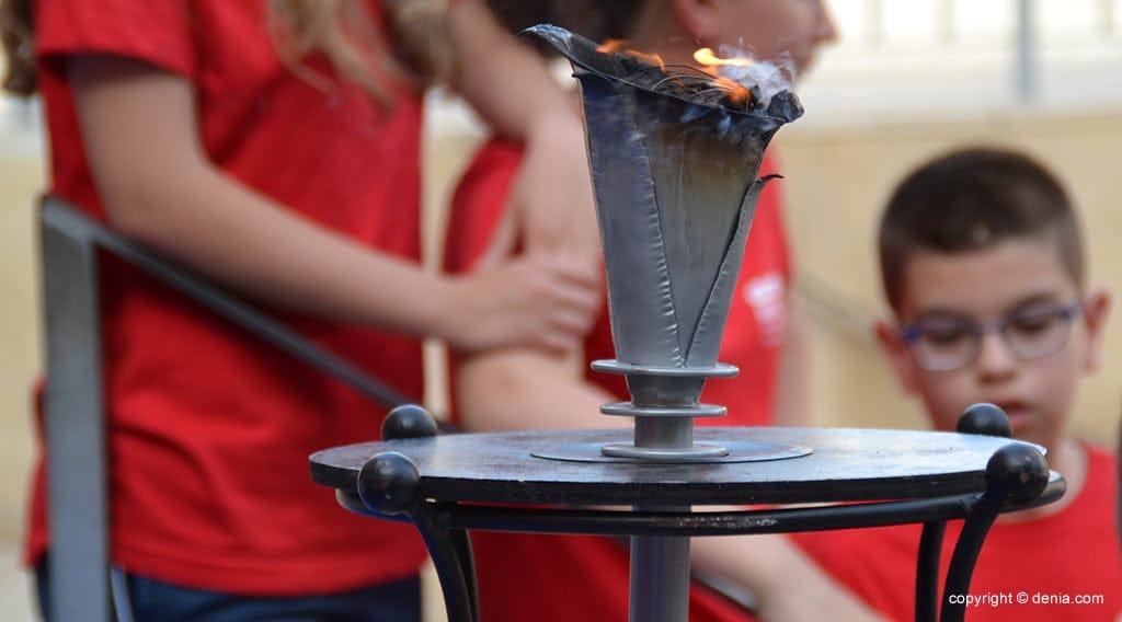 Después de un largo recorrido desde Calpe y pasando por todas las poblaciones que participarán en los XI Mini Jocs Olímpics de la Marina Alta, la antorcha llegó a Dénia.