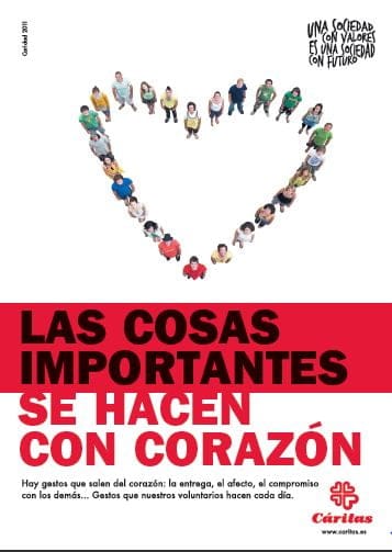 Coincidiendo con la celebración, el próximo domingo 26 de junio, del Día de Caridad, la entidad solidaria ha dado a conocer tanto el balance de 2010 como el lema de la campaña para ese día: “Las cosas importantes se hacen con corazón”. Y es que Cáritas apuesta por un cambio de valores hacia un estilo de vida más justo y solidario, prestando especial atención al compromiso de sus voluntarios en este Año Europeo del Voluntariado.