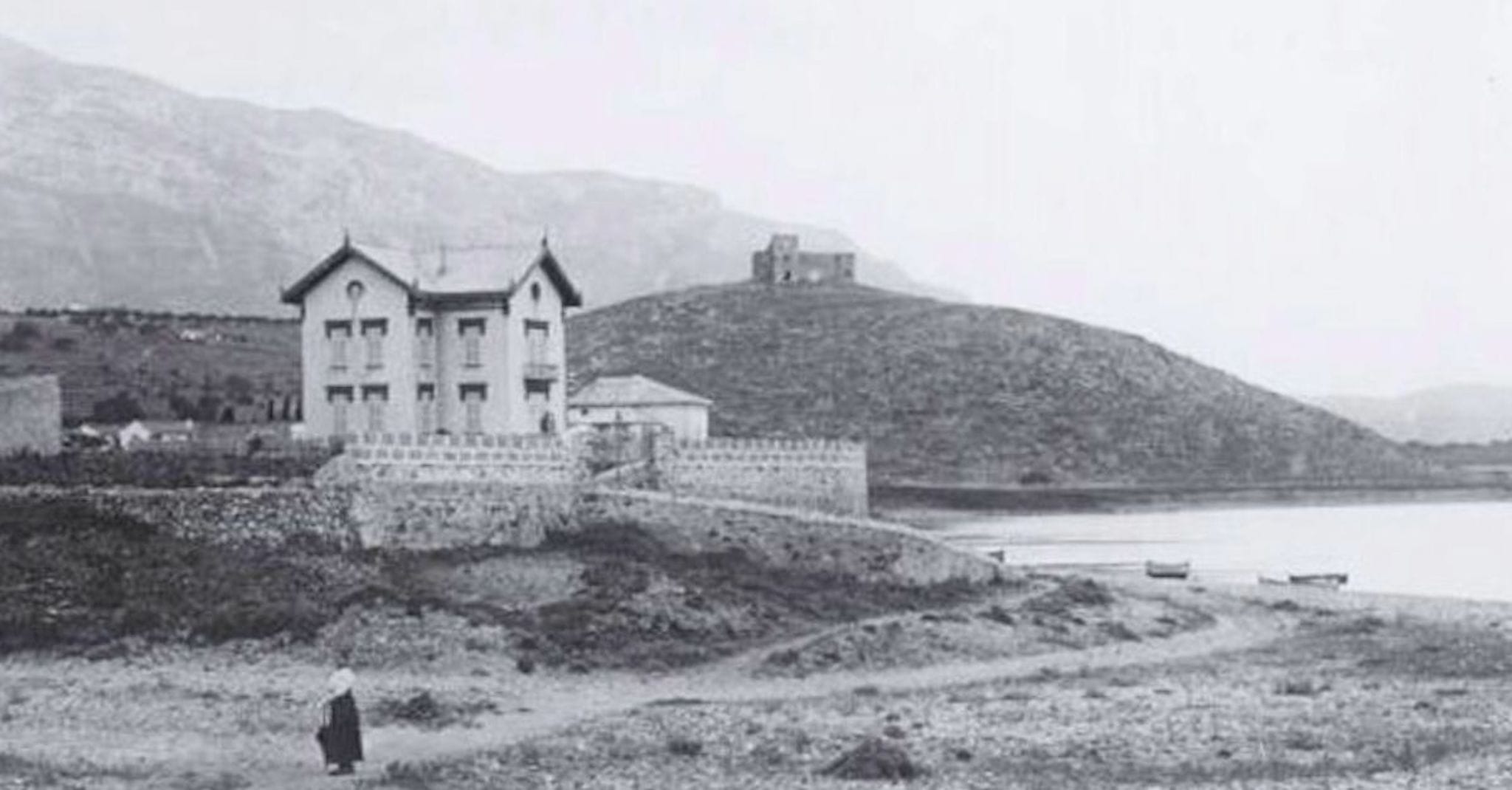 Fotografía tomada en la primera década del siglo XX por Francesc Xavier Parés i Bartra. En ella aún se aprecia en pie la estructura del Castell d’Olimbroi, poco antes de su demolición para la construcción de la escollera sur del puerto de Dénia. Imagen cedida por la familia Cardona-Far al Arxiu Municipal de Dénia.