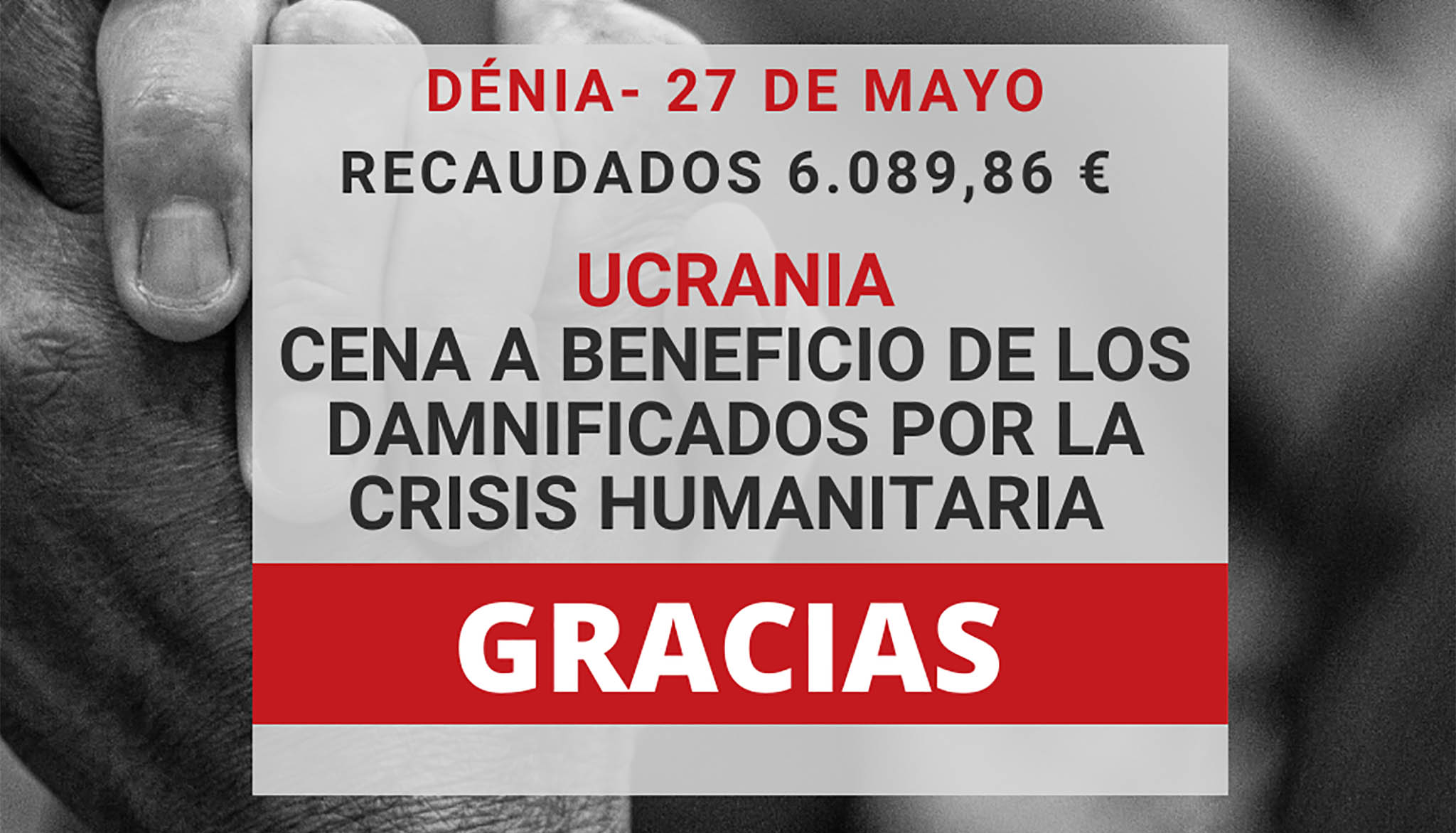 03 de junio de 2022 - 11:50 1 de 1Ver el artículo original: CEDMA, Rotary, Cruz Roja y Fundació Dénia recaudan 6000 euros para los damnificados por la crisis humanitaria en Ucrania Cartel de agradecimiento de CEDMA tras el éxito de recaudación