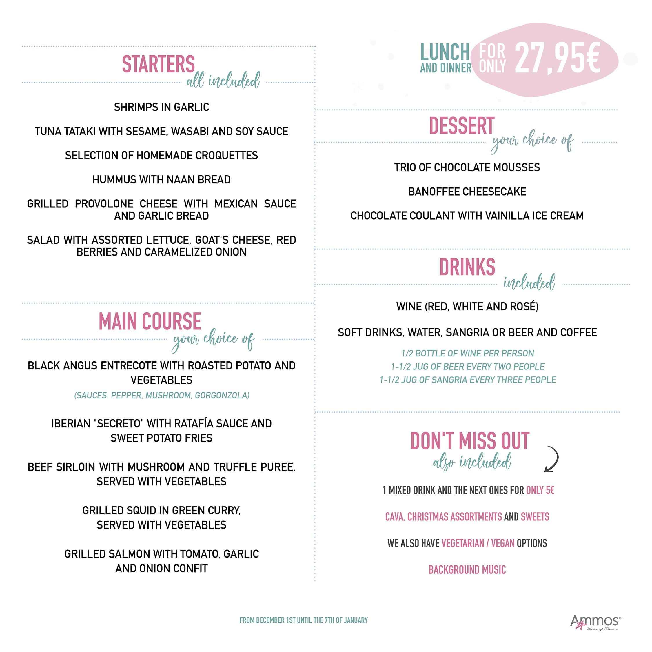 Disfruta de tus comidas y cenas de Navidad con el Restaurante Ammos.