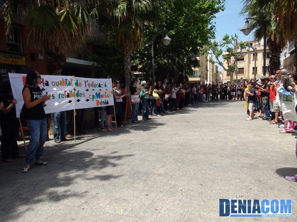 17 de mayo de 2012 - 16:29 Foto Anterior3 de 17Foto SiguienteVer el artículo original: Centenares de personas salen a la calle para defender la educación pública Cacerolada en la manifestación por la educación de Dénia Centenares de personas se manifiestan en Dénia por la educación Durante la lectura del manifiesto en la manifestación por la educación pública en Dénia El IES de Teulada en la manifestación de Dénia Lectura del manifiesto por la educación pública en la manifestación de Dénia Lectura del manifiesto por la educación pública en la manifestación de Dénia por parte de una profesora Manifestación en defensa de la educación pública en Dénia Manifestación en Dénia por la educación pública Manifestantes por la educación pública en Dénia Mensajes de los manifestantes en la manifestación de Dénia No hay pan para tanto chorizo Pancarta del colegio Montgó de Dénia en la manifestación a favor de la educación Pancarta del IES Xebic de Ondara en la manifestación de Dénia Pancarta en favor de los profesores mostrada en la manifestación por la educación en Dénia Plataforma per l’ensenyament públic de la Marina Alta en la Manifestación de dénia Sentada a favor de la educación durante la manifestación de Dénia Sentada durante la manifestación pro educación en Dénia