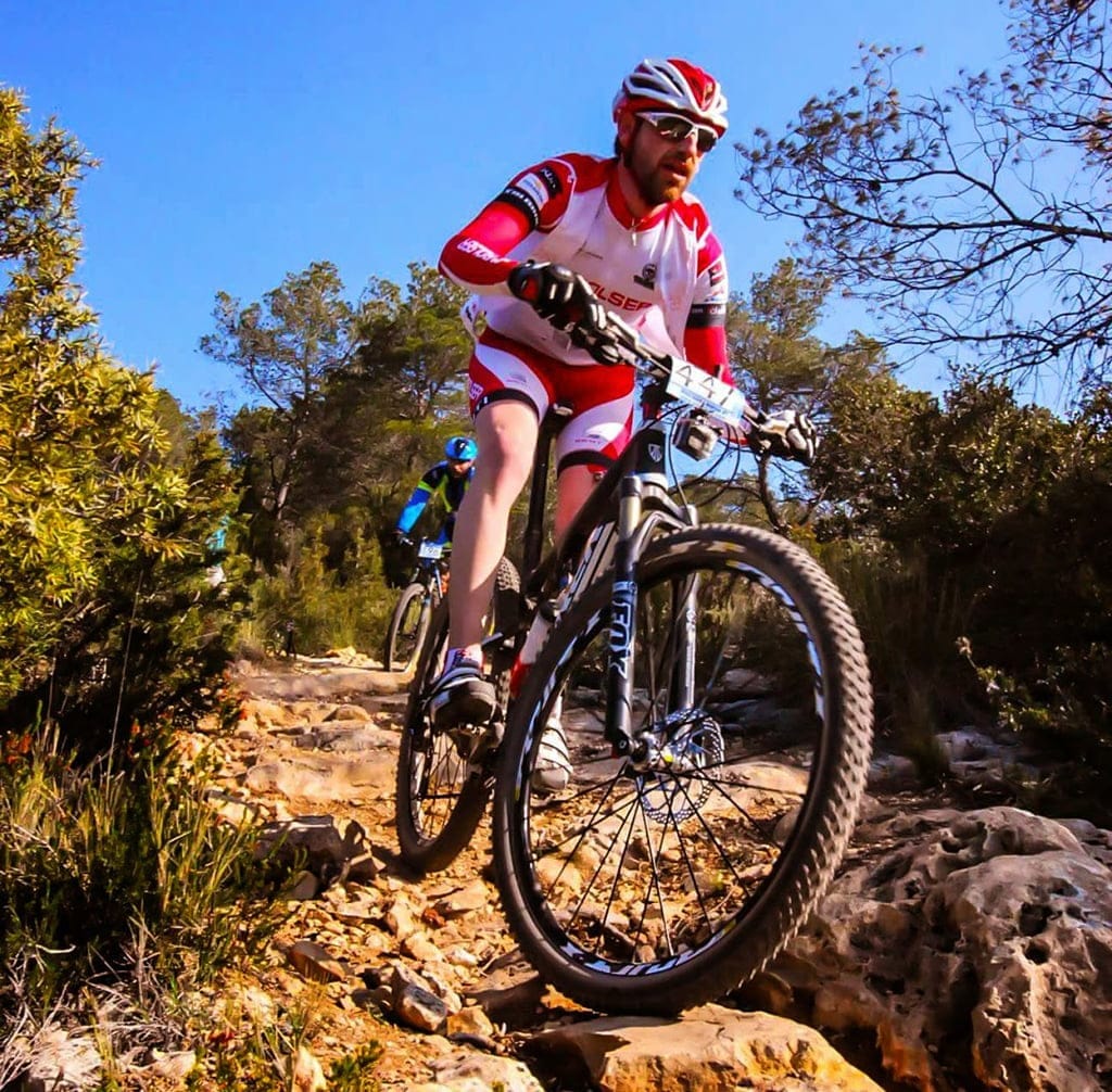 El ciclista atravesando un tramo de la prueba celebrada en Requena.