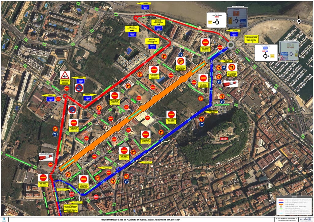 Para reordenar el tráfico durante ese tiempo, la Policía Local ha establecido dos rutas de desvío: La circulación de entrada a Dénia en dirección al puerto y Les Marines se hará por Abu-Zeyan, plaza de Cholet, avenida de Gandia, avenida de Alcoi, Ronda Murallas, doctor Fleming y plaza de Benidorm. El tráfico en dirección a la salida de Dénia se desvía por la plaza de Benidorm, carretera de Les Marines, calle Ausiàs March, avenida dels Furs, Camí del Llavador, avenida de Andalucía, plaza de Cholet, Abu-Zeyan y avenida de Valencia.