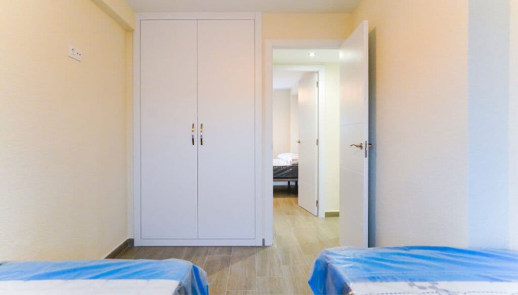 Habitación totalmente transformada: paredes, armarios, interruptores, puertas