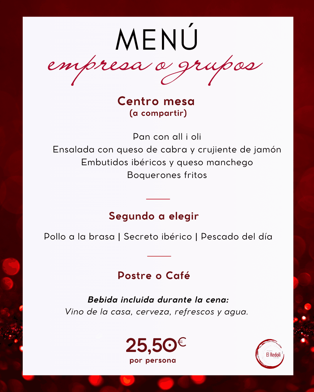 14 de diciembre de 2023 - 11:50Degusta tus platos favoritos Foto Anterior10 de 10Ver el artículo original: Conoce los deliciosos menús propuestos por estos restaurantes para celebrar la Navidad Degusta diferentes platos con este menú para tus reuniones de empresa Degusta el menú de Nochevieja para desdir el año como te mereces Disfruta de un menú de empresa completo en El Cantó Un menú navideño en El Cantó Platos tradicionales para degustar en Origen Disfruta de la Navidad con el menú de Athenas Despide el año de la mejor forma en El Redolí Una nochevieja muy especial en Restaurante Athenas Este es el menú especial con el que disfrutar en Navidad en El Redolí Celebra tus reuniones de empresa en El Redolí