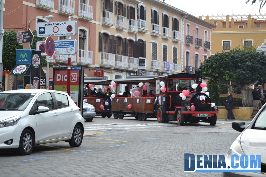 El tren turístico recorrió las calles de Dénia con la charnaga Cachorras band en el Día de la Banderita.