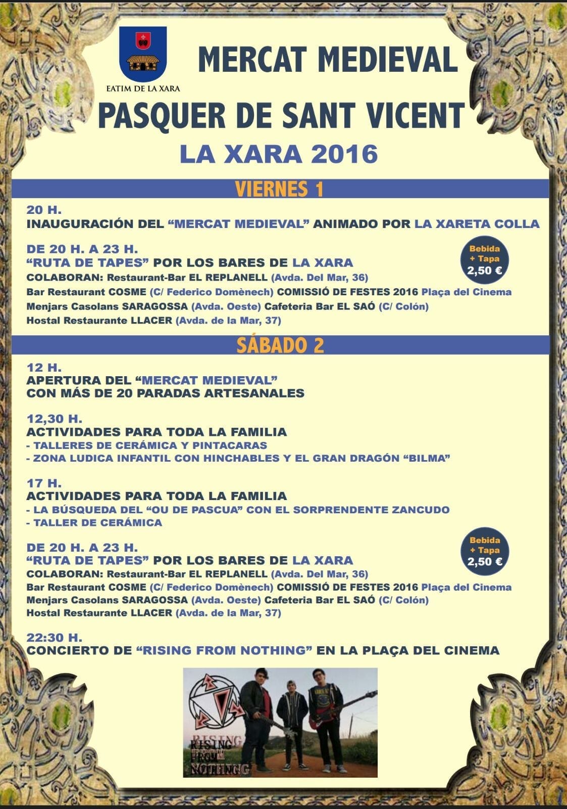 Programación del Mercado Medieval y la ruta de Tapes en La Xara.