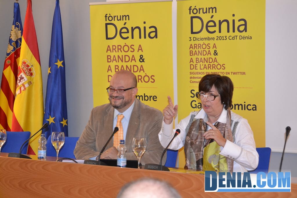 El periodista Paco Alonso junto a Pepa Font en la inauguración del foro Dénia Arròs a Banda & A Banda de l’arròs.