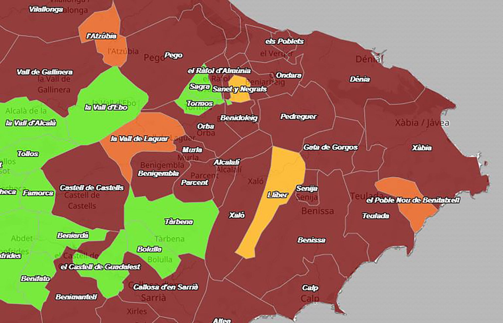 28 de diciembre de 2021 - 09:48 1 de 1Ver el artículo original: Dénia registra de nuevo más de un centenar de contagios en el último fin de semana Incidencia acumulada por municipios el 28 de diciembre de 2021