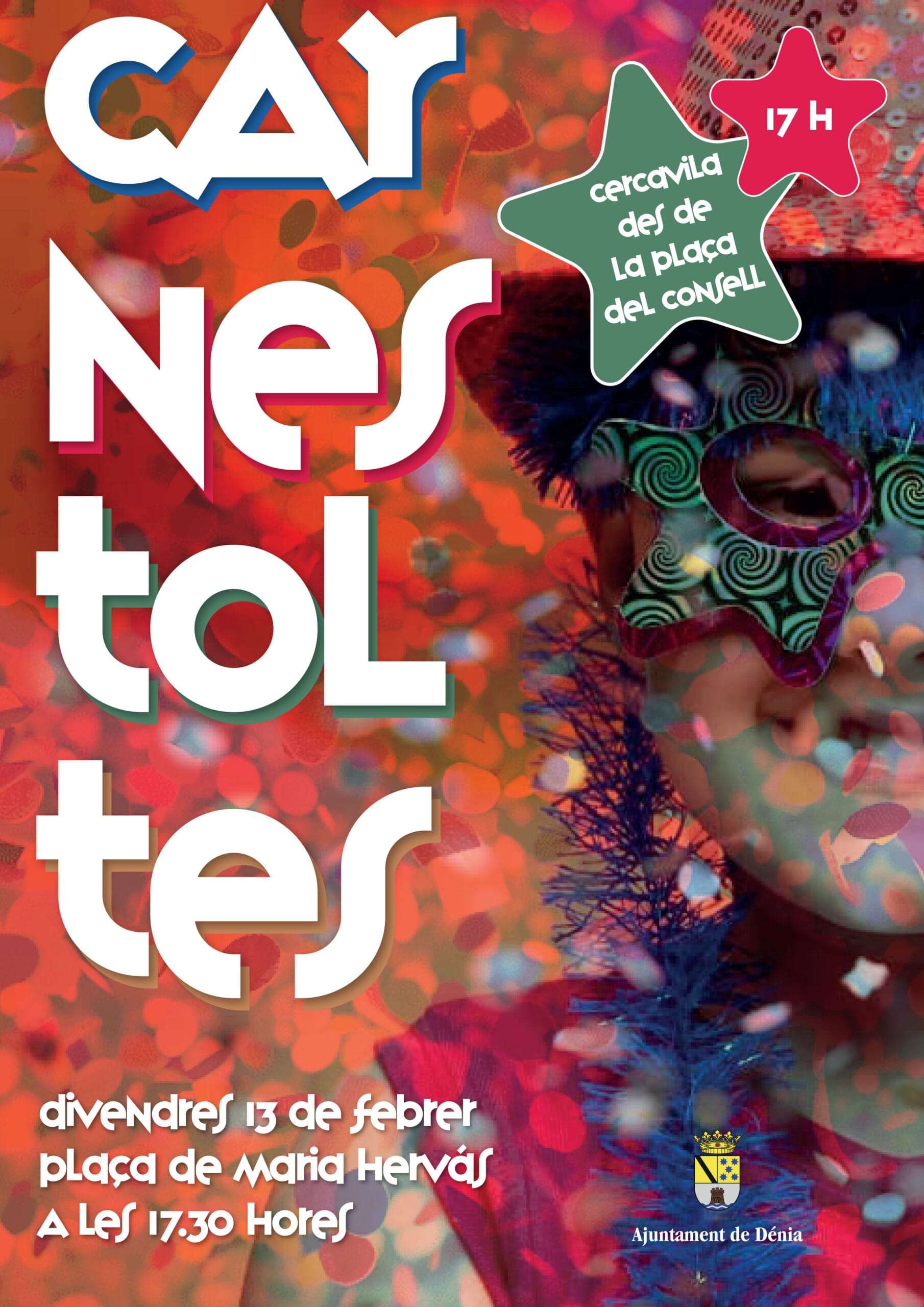04 de febrero de 2026 - 10:48 Foto Anterior3 de 5Foto SiguienteVer el artículo original: Dénia se disfraza por completo: tres días de carnaval para niños, jóvenes y mayores Fiesta y premios Carnaval Dénia 2026 Fiesta Carnaval Dénia 2026 Cartel fiesta Carnaval Dénia Viernes 13 febrero 2026 Programa Carnestoltes Dénia 2026 Pasacalle Carnaval Dénia en 2024