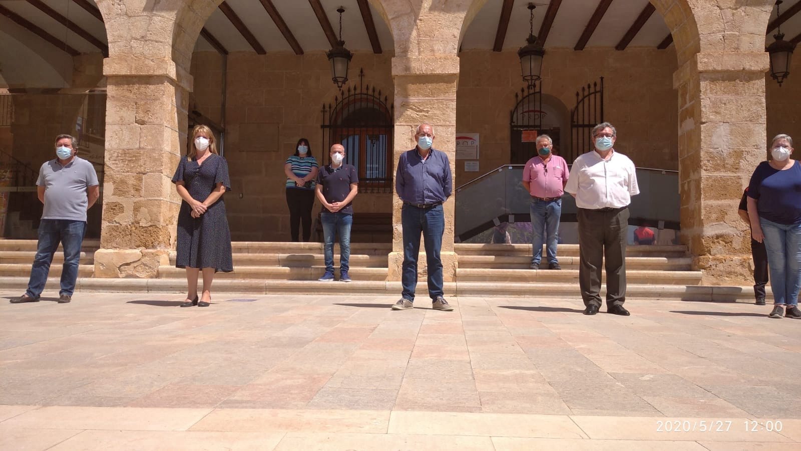27 de mayo de 2020 - 12:22 Foto Anterior2 de 2Ver el artículo original: Dénia se suma al minuto de silencio en memoria de las víctimas de la COVID-19 Minuto de silencio frente a la comisaría de la Policía Local Minuto de silencio frente al ayuntamiento