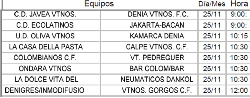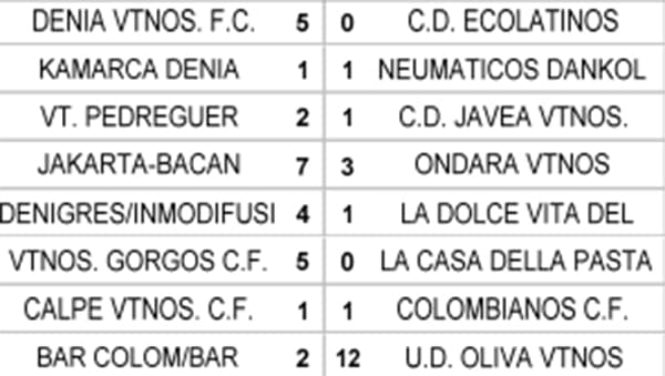 El conjunto de Gata Vtnos no pierde comba y sigue en la parte alta de la clasificación al imponerse por 6 a 0 a La Casa Della Pasta. Y por último, señalar el triunfo de Vtnos Pedreguer sobre el CD Jávea por 2 a 1.