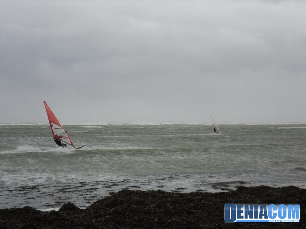 Playa de la Marineta Cassiana – Windsurfistas durante el temporal
