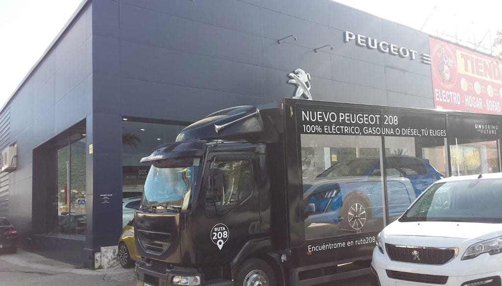 Un camión de Peumóvil recorre Dénia mostrando el nuevo modelo 208