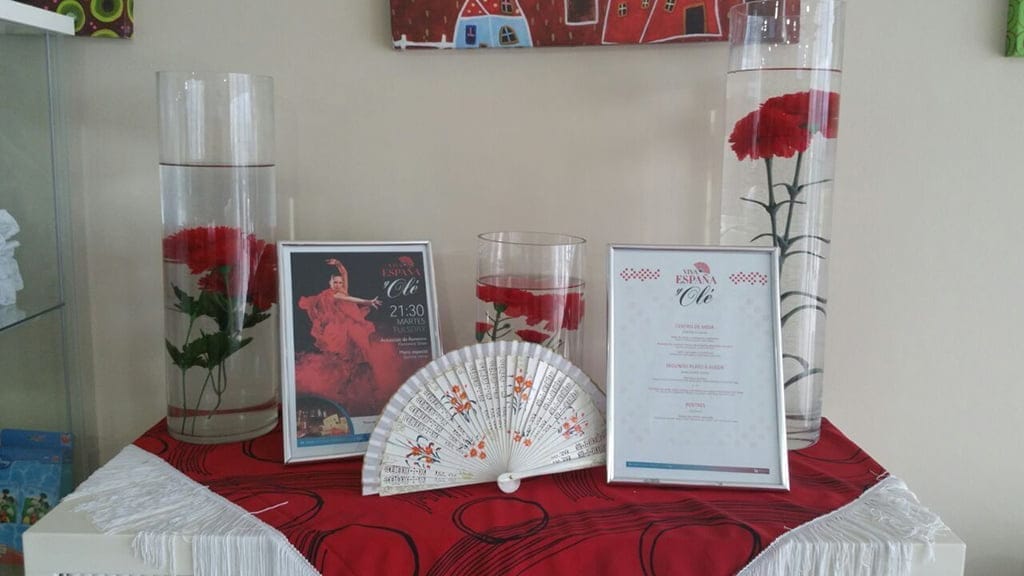 03 de agosto de 2015 - 10:12Disfruta de la noche más española en Ona Ogisaka Garden Foto Anterior2 de 8Foto SiguienteVer el artículo original: Descubre las noches temáticas de Ona Ogisaka Garden Camisetas Viva España y Olé Fiesta temática flamenca Mesa ambientada Noche Viva España y Olé Tablao flamenco Viva España y Olé Mesa fiesta temática Ona Ogisaka Garden