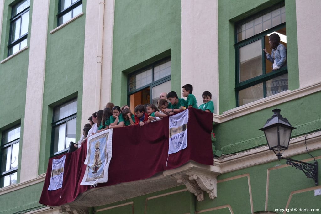 Procesión de la Mare de Déu dels Desemparats 2017 – Niños en el balcón del colegio Maristas