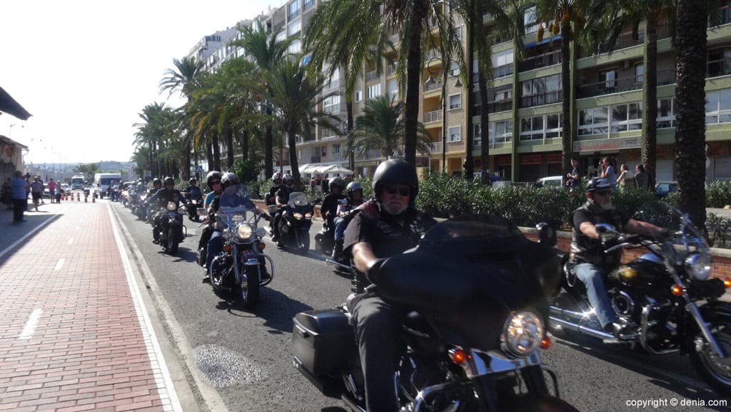 Decenas de moteros escoltaron el camión en el que viajó hasta Dénia la iamgen de La Peregrina.
