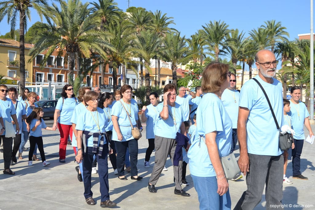 Miembros de la parroquia de San Miguel acompañaron a la imagen del santo hasta el puerto de Dénia para recibir a La Peregrina.