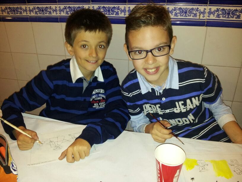 El presidente infantil de Baix la Mar preparando su tarjeta de Navidad.