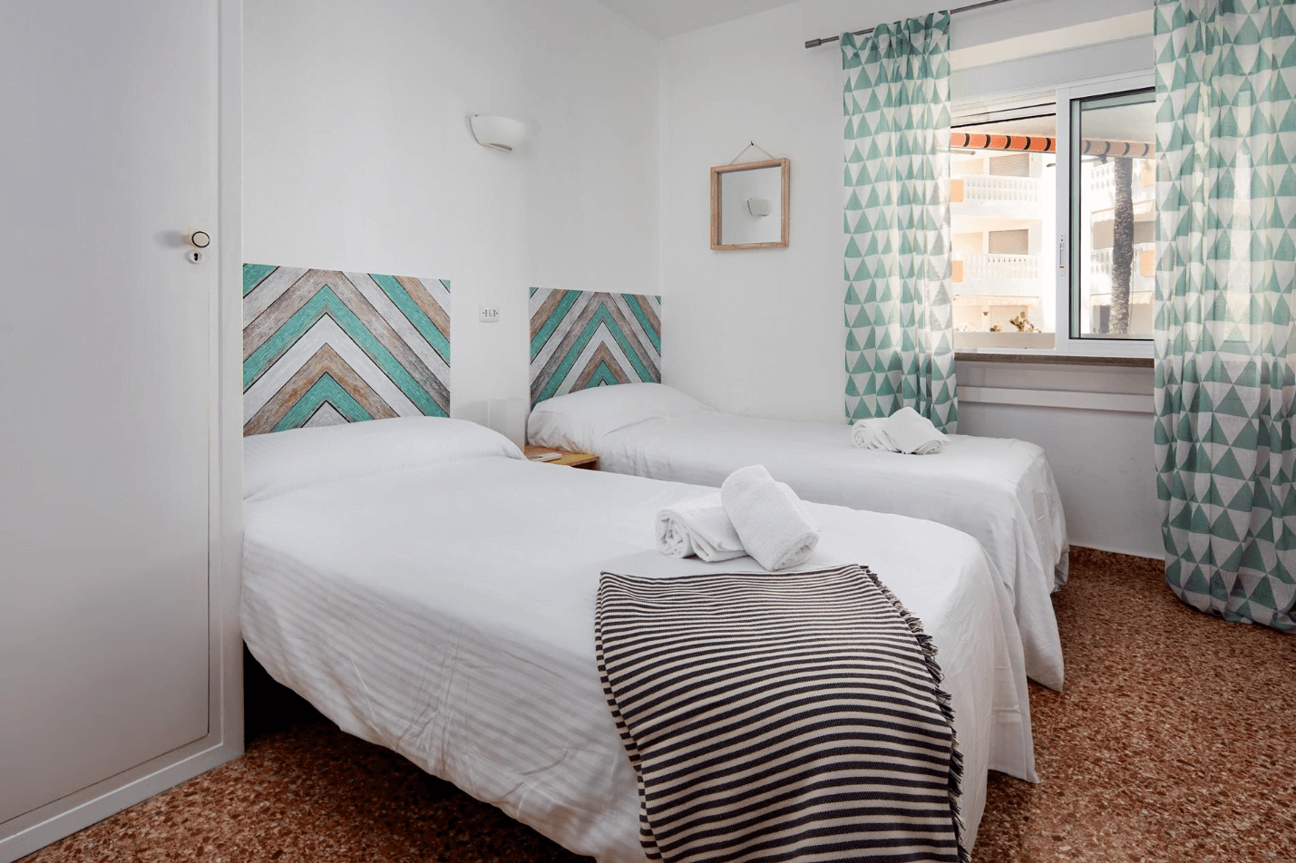 13 de mayo de 2022 - 12:50Dormitorio equipado con dos camas individuales y aire acondicionado Foto Anterior5 de 10Foto SiguienteVer el artículo original: El apartamento perfecto para 4 personas en el que pasarás unas estupendas vacaciones en Dénia Acceso directo a la playa desde el residencial Aseo en el apartamento con lavabo y WC Baño del apartamento equipado con ducha Cocina completamente equipada del apartamento Dormitorio con dos camas individuales Dormitorio de la vivienda con cama de martrimonio Jardines muy bien mantenidos del residencial Piscina comunitaria del residencial Salón-comedor del apartamento con moderna decoración Terraza cubierta de la vivienda con conjunto de exterior