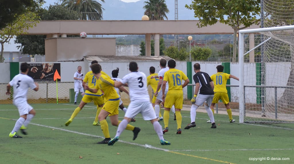Poco a poco el CD Dénia fue llegando con mayor claridad al área local, y Javi resolvió muy bien un regalo del central local que le entregó un balón al borde del área que el jugador groguet resolvió anotando el segundo gol de su equipo.