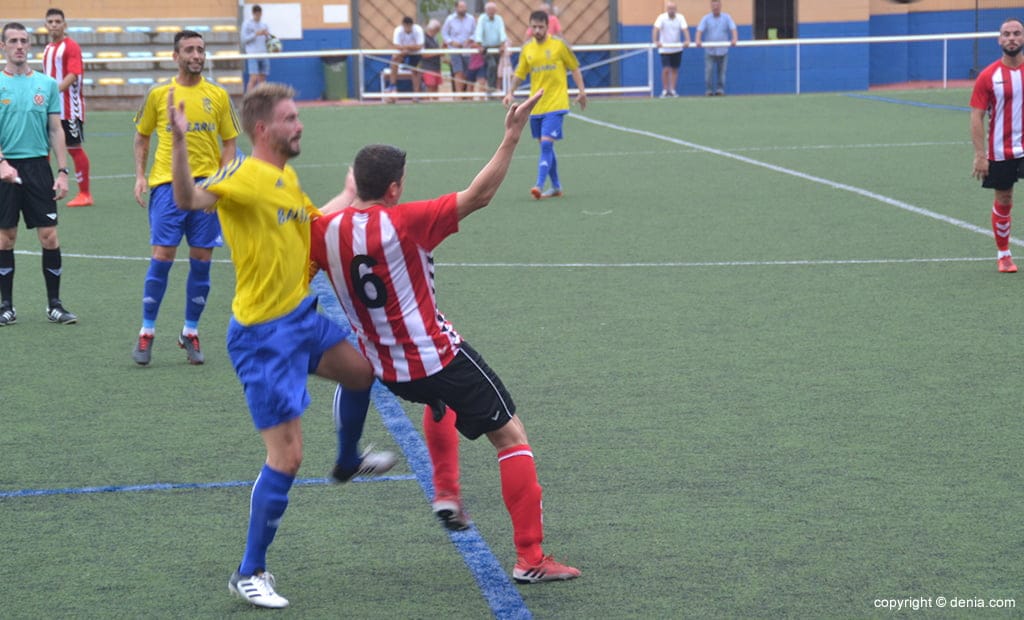 Ese gol supuso que los locales se tranquilizasen en su juego, ante un rival al que no le quedaron fuerzas ni recursos para entrar en el área local. Al final del choque se llegó con la victoria local por 1 a 0 que permite al CD Dénia seguir invicto y en lo más alto de la clasificación.