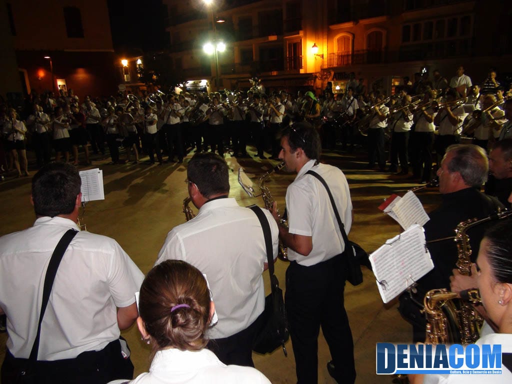 15 de agosto de 2012 - 03:13 Foto Anterior7 de 10Foto SiguienteVer el artículo original: El concierto de bandas se consolida como uno de los actos importantes de la fiesta de Moros y Cristianos Algunos miembros de filàs se unen a los músicos en el Concierto de Bandas de la AMMICC Capitanes y abanderadas desfilan en el Concierto de Bandas de la AMMICC Concierto de Bandas de la AMMICC El director Javier Pinto orquesta a las 16 bandas El presidente de la AMMICC, Josele Maldonado, entrega un obsequio de gratificación al director Javier Pinto El público se levanta para aplaudir a las bandas y charangas Las bandas interpretanlas marchas El Cid, Caravana y el pasodoble Xàbia Las filàs aclaman las marchas que interpretan los músicos participantes Las filàs desfilan al son de las marchas Trompetas, flautas, clarinetes y tubas en el Concierto de Bandas de la AMMICC