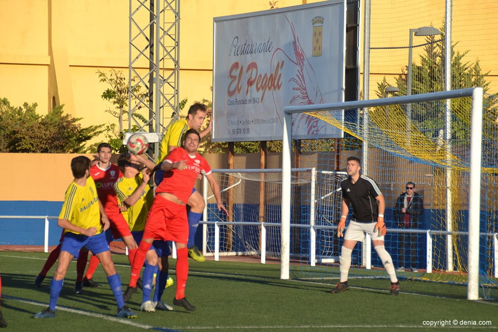 El derbi comarcal que disputaron el CD Dénia y el Pego CF, en el campo Diego Mena, deparó para los aficionados una buena tarde donde hubo más goles que buen fútbol. Ninguno de los dos entrenadores deberá de esta contento con sus zagueros ya que dejaron remates muy sencillos para que los delanteros anotasen.