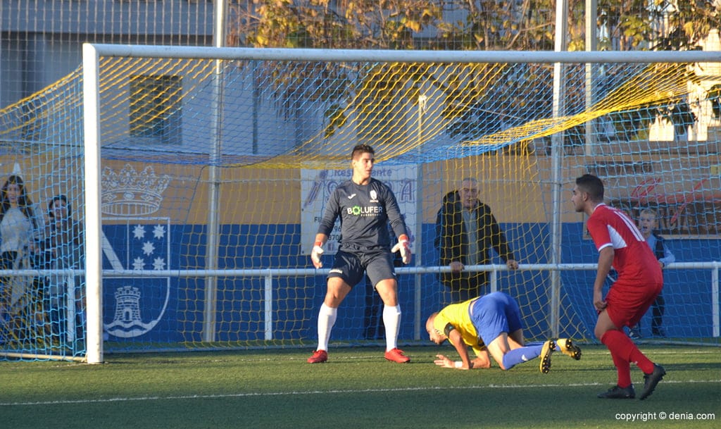 CD Dénia: Maxi, Crespo, Mateo (Fran 89′), Ferrán, Keko, Jordi, Adrián, Beibel (Javi 62′), Guerrero (Santafé 83′), Panucci y Luis Domenech (César 78′).