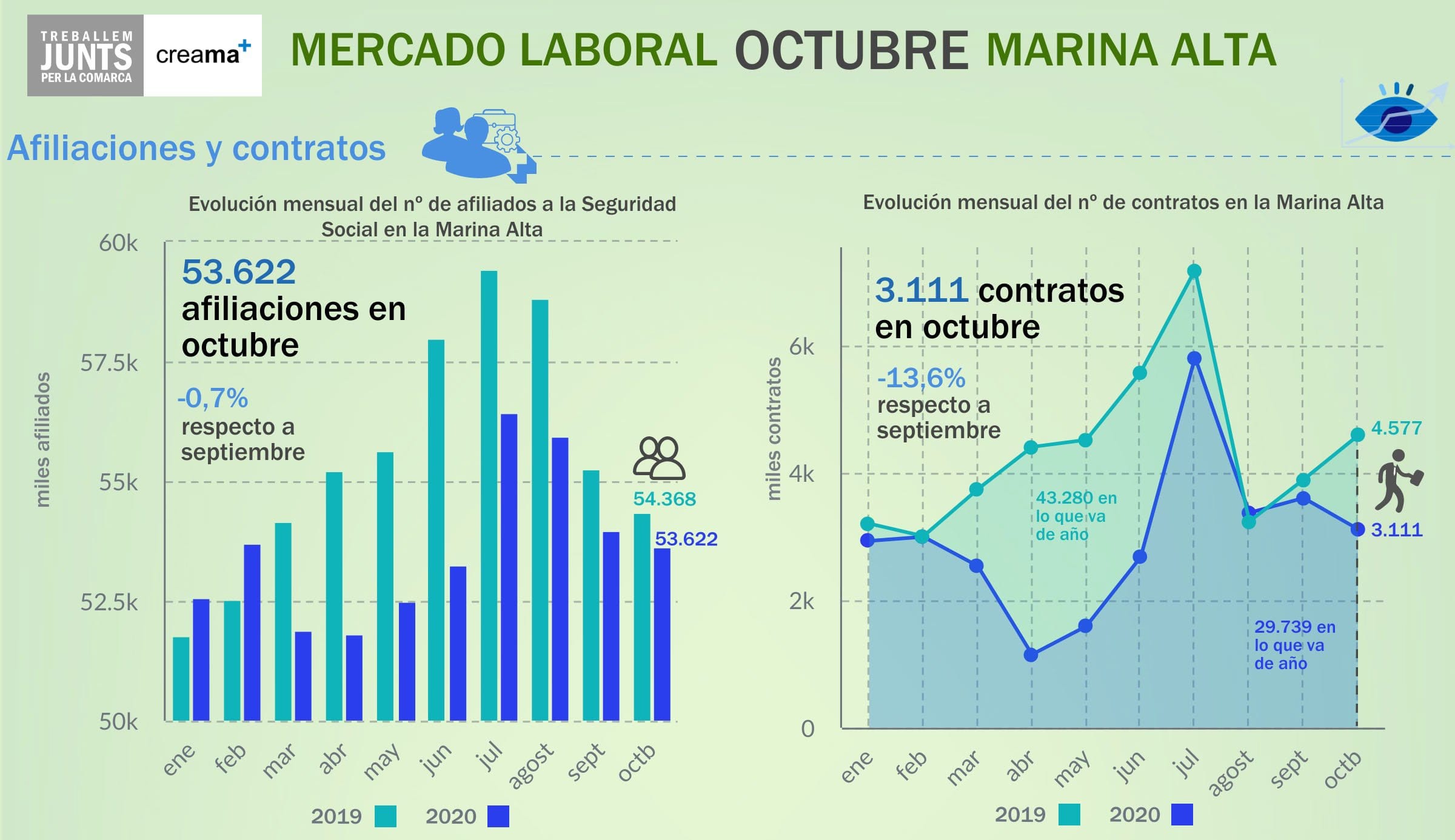 16 de diciembre de 2020 - 16:09 1 de 2Foto SiguienteVer el artículo original: El desempleo aumenta en 593 personas durante el mes de noviembre Datos de afiliados a la SS en Octubre en la Marina Alta Datos sobre el desempleo en noviembre de 2020