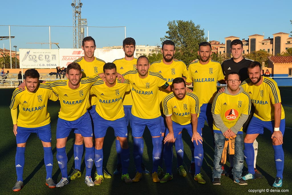 CD Dénia: Maxi, Crespo, Mateo, Ferrán, Keko, Jordi (Beibel 83′), Adrián (Carlos Ribes 91′) Javi, Guerrero, Panucci y Luis Domenech (César 63′).