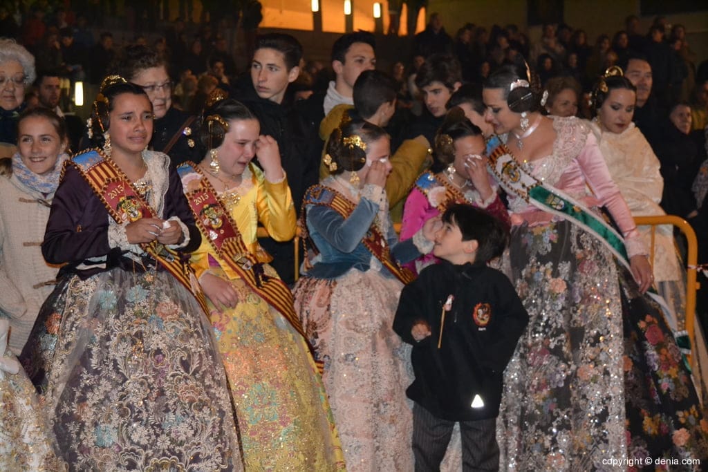 La cremà de la falla de la junta Local Fallera marcó el inicio de la nit de la cremà en la que ardieron los 23 monumentos oficiales que han lucido en los últimos días en las calles de Dénia.
