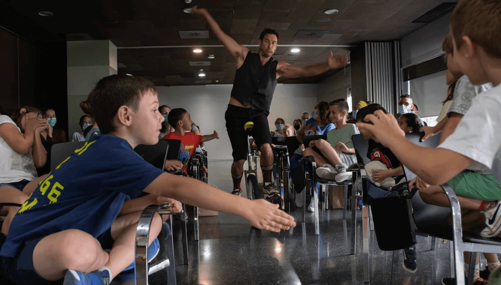 13 de junio de 2023 - 13:07La sonrisa de todos los niños es la mejor medicina Foto Anterior3 de 5Foto SiguienteVer el artículo original: El Hospital de Dénia festeja el fin de curso de los menores hospitalizados Actuación de circo en el hall principal Celebración del final de curso de los niños hospitalizados Espectáculo para hacer sonreír a los pequeños Han participado una treintena de niños Menores hospitalizados en la planta de Pediatría