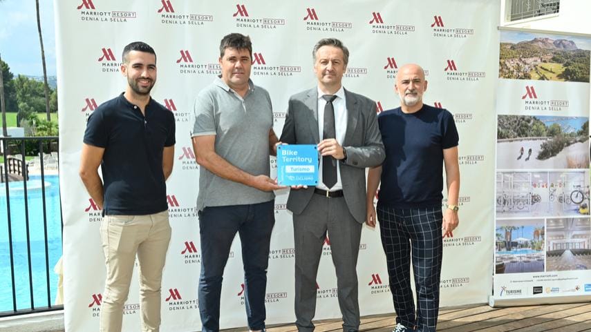 De izquierda a derecha: Valentín Alcalá, Concejal de Deportes y Juventud Dénia; José Enrique Gutiérrez, Pdte. Fed. Valenciana Ciclismo; Jérôme Gateau, Dir. Hotel Dénia Marriott La Sella y Javier Scotto, Concejal Delegado en materia de Seguridad y Movilidad Dénia.