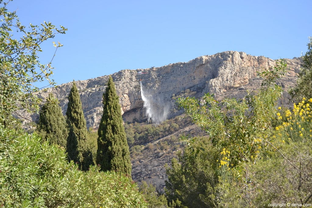 Cinco medios aéreos han trabajad durante la mañana del sábado en los trabajos de extinción del fuego ocasionado en el Parque Natural del Montgó.