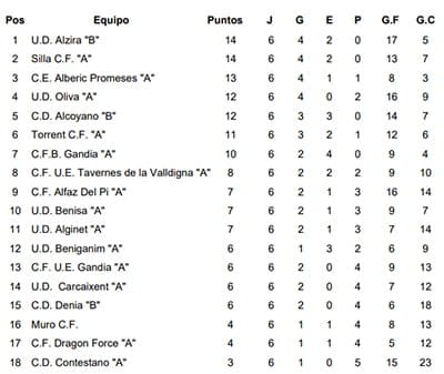 UE Gandía: Pablo, Ballester, Guillermo(Figueres 70′), Tomé(Juan 54′), Carlos, Ximo, Edgar, Reina(Carlos Andrés 72′), Torres, Costinuic(Insa 60′) y Popa.
