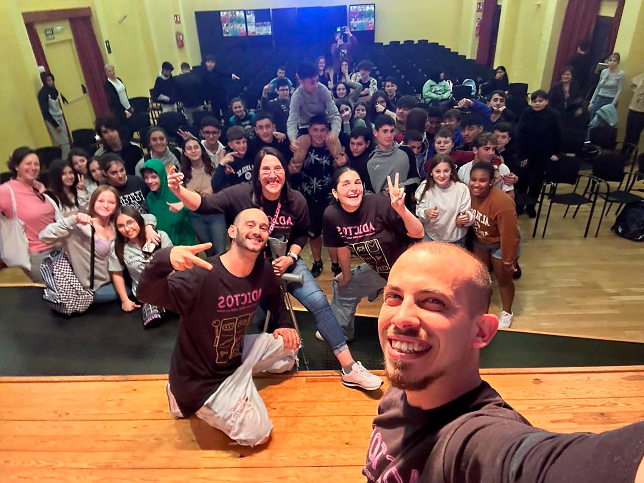 24 de marzo de 2023 - 11:04 1 de 3Foto SiguienteVer el artículo original: El musical «Adictos. Drogas, Adicciones y otros juegos que matan» reúne a 400 alumnos dianenses Alumnos de Dénia tras la función de Inefable Producciones Amín Sáez, Iván Aledo y Karina Van Boeschoten de Inefable Producciones Elenco del musical ‘Adictos. Drogas, Adicciones y otros juegos que matan’ junto a alumnas y alumnos de Dénia tras una función