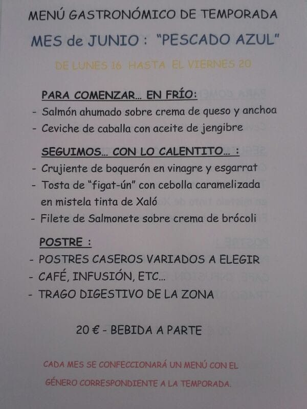 Menú especial gastronómico de Restaurante Mena, especial pescado de temporada Pescado azul.