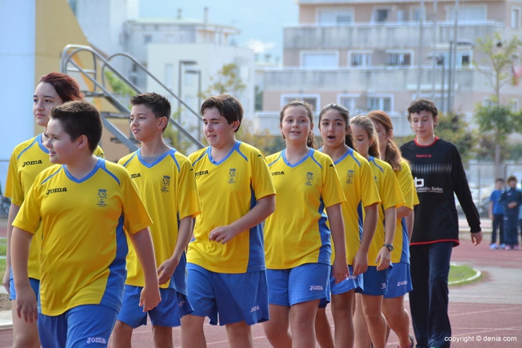Componentes de la Escuela de Balonmano pasando por la tribuna.