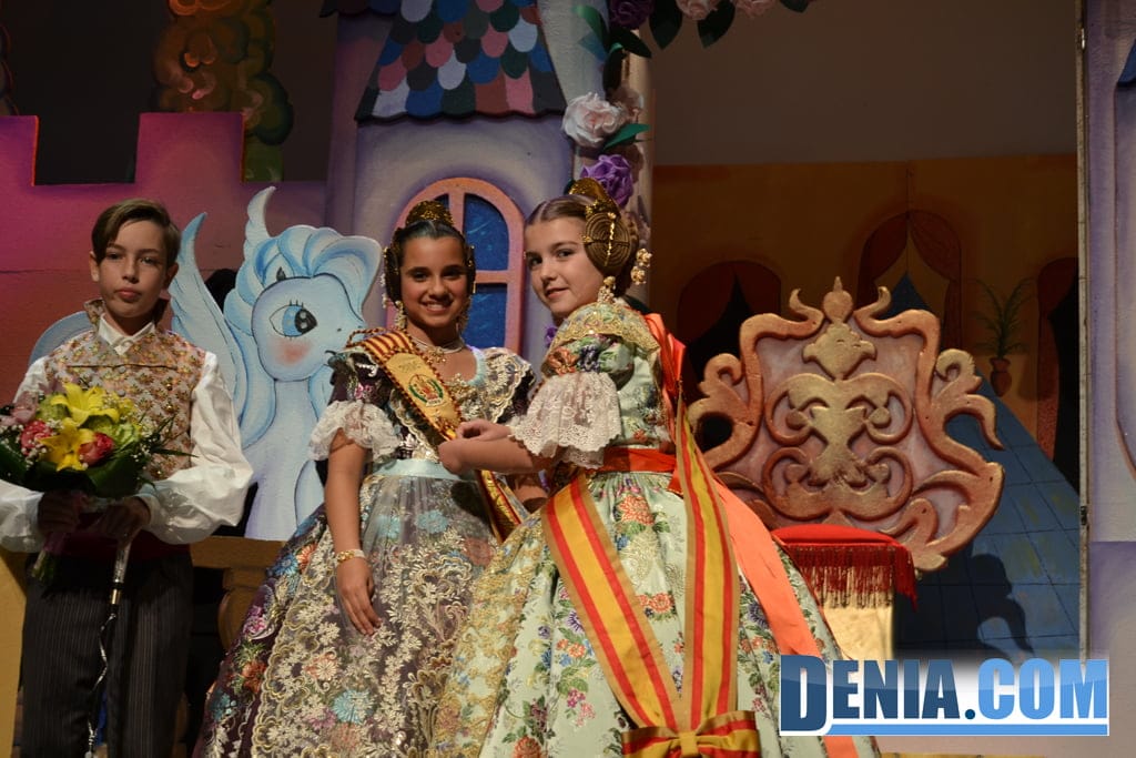 La Fallera Mayor Infantil de Dénia, Paloma Mengual, junto a la Fallera Mayor Infantil de Les Roques, Belén Moya.