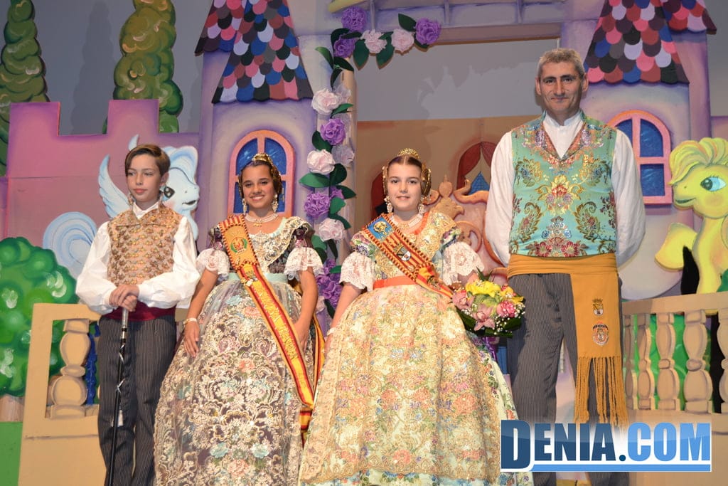 Pau Nofuentes y Belén Moya, cargos infantiles de Les Roques 2014, junto a la fallera mayor infantil de Dénia, Paloma Mengual, y el presidente de la Junta Local Fallera, Jaume Bertomeu.