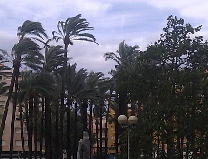 La calle La Vía, la esquina de Fora Mur con calle Pont, y la zona del colegio Llebeig fueron testigos de la caída de ramas que provocaron daños a vehículos, mientras que en el Paseo Saladar, explanada Cervantes y avenida Joan Fuster fueron árboles lo que cayeron, interrumpiendo la circulación en el último caso, ya que un árbol cayó en la calzada a la altura del nuevo polideportivo de barrio.