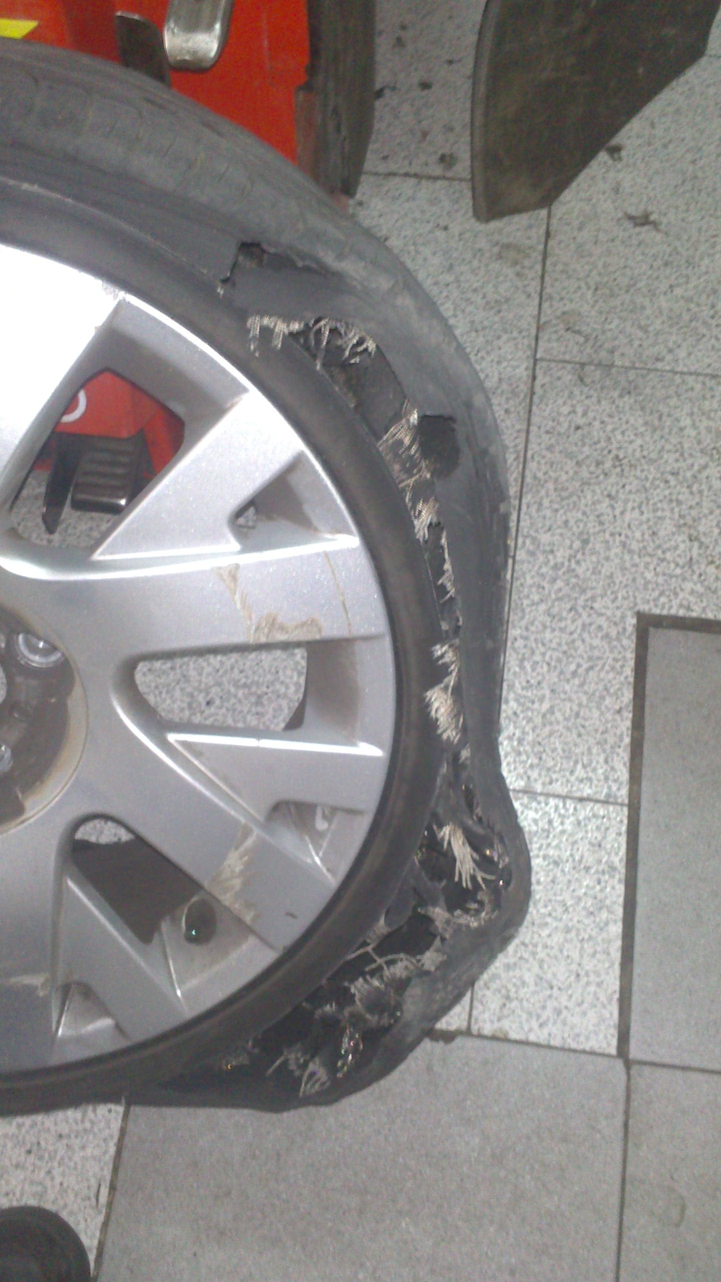 Talleres RSJ aporta un ejemplo de cómo puede quedar un neumático tras su uso en un desplazamiento largo si no tenemos un buen mantenimiento sobre él.