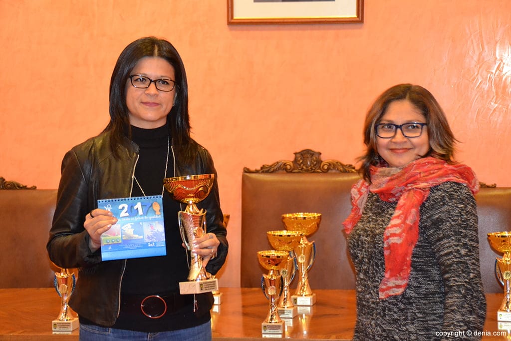 08 de febrero de 2017 - 23:56Natalia Ayala con Jessica Romero. Foto Anterior11 de 15Foto SiguienteVer el artículo original: Entrega de trofeos de la ‘III Cursa de la Dona ‘ de Dénia Todas las premiadas con sus trofeos junto a autoridades Podio Veterana A Álex García con sus papis Crespo, Carrió y Grimalt presidieron la entrega de trofeos Emma Fornés y Ángela Moltó con los trofeos Jessica Romero besando a Emma Fornés Laurence Rastell junto a Mila Ortega Laurence Rastell con su trofeo Marc Bañuls dando las gracias a las participantes Marián Tamarit en su discurso Natalia Ayala con Jessica Romero Nieves Corrella con su trofeo Podio Senior con los trofeos Podio Veteranas C La Clinica Rema premió a Anna Berglind