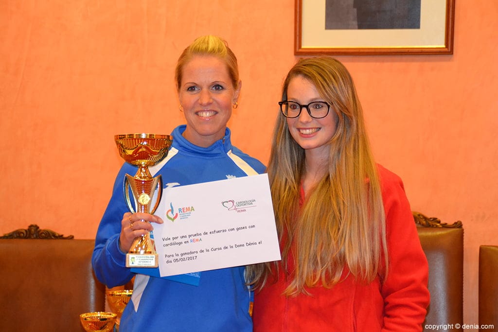 08 de febrero de 2017 - 23:59La Clinica Rema premió a Anna Berglind. Foto Anterior15 de 15Ver el artículo original: Entrega de trofeos de la ‘III Cursa de la Dona ‘ de Dénia Todas las premiadas con sus trofeos junto a autoridades Podio Veterana A Álex García con sus papis Crespo, Carrió y Grimalt presidieron la entrega de trofeos Emma Fornés y Ángela Moltó con los trofeos Jessica Romero besando a Emma Fornés Laurence Rastell junto a Mila Ortega Laurence Rastell con su trofeo Marc Bañuls dando las gracias a las participantes Marián Tamarit en su discurso Natalia Ayala con Jessica Romero Nieves Corrella con su trofeo Podio Senior con los trofeos Podio Veteranas C La Clinica Rema premió a Anna Berglind