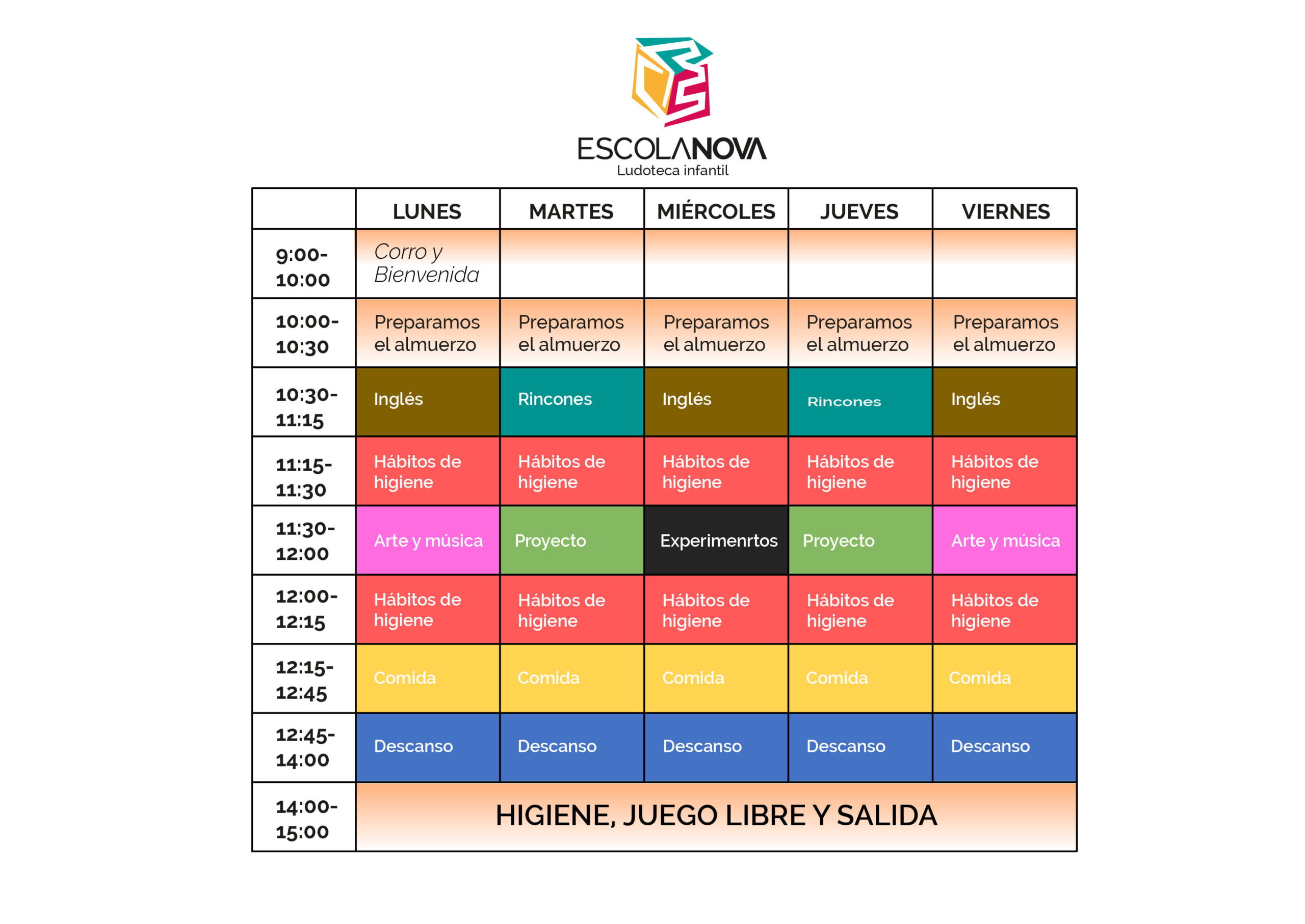 18 de agosto de 2020 - 10:38Horarios para los niños y niñas de 2 años. Foto Anterior9 de 10Foto SiguienteVer el artículo original: Escolanova abre matrícula para niños y niñas de dos años por las mañanas, de 9.00h a las 15.00h Flyer puertas abiertas Escolanova Fotos niños pintura Escolanova Fotos niños pizarra Escolanova Horarios Escolanova Juego libre Escolanova Niños con pintura mural Escolanova Pintura llamativa y lumniosa Escolanova Pintura luminosa Escolanova Horarios mañana Escolanova ludoteca-infantil-escolanova